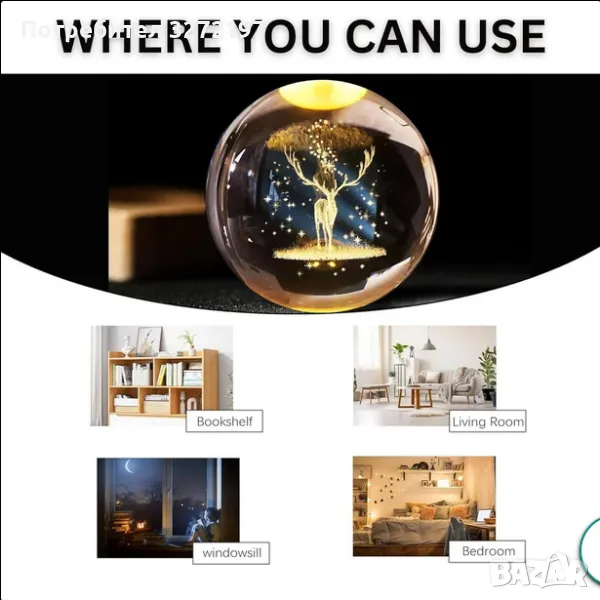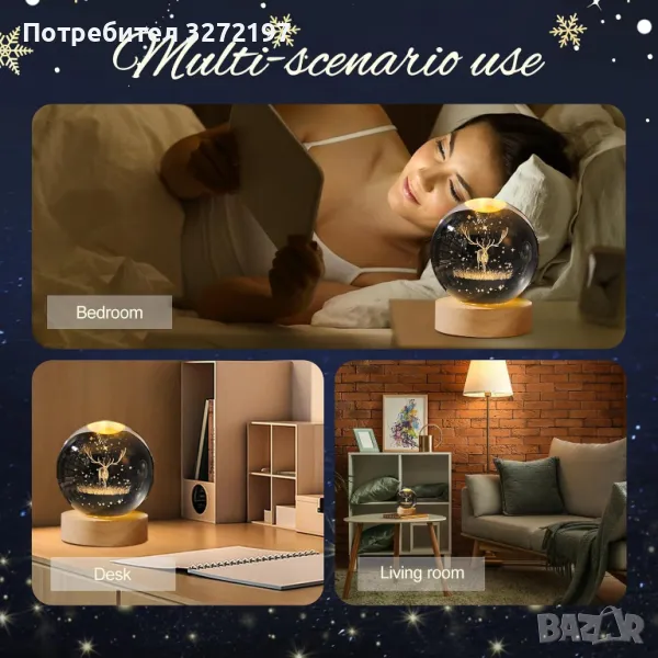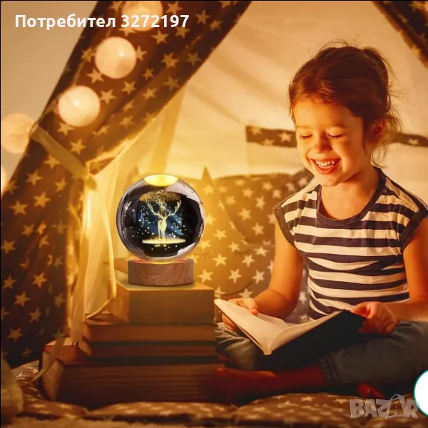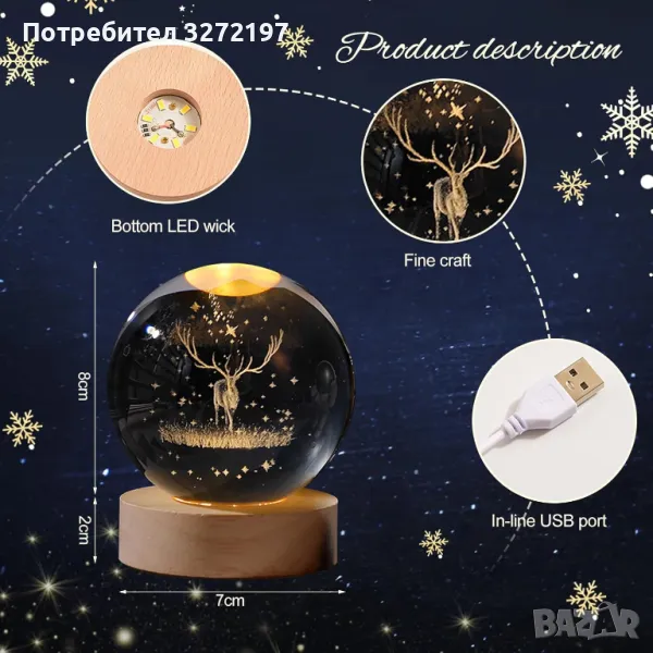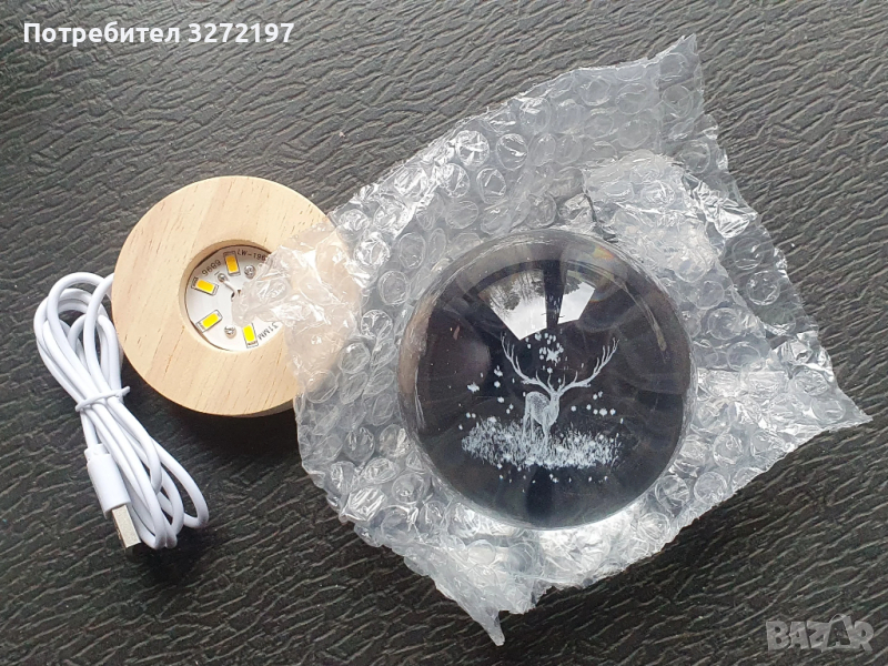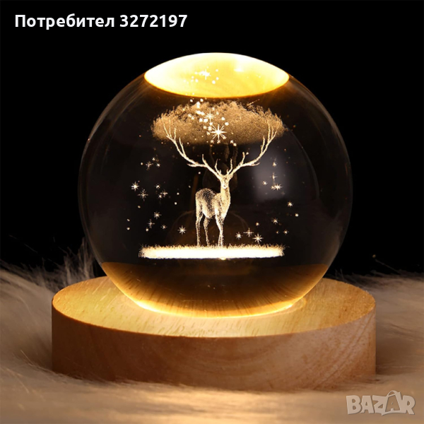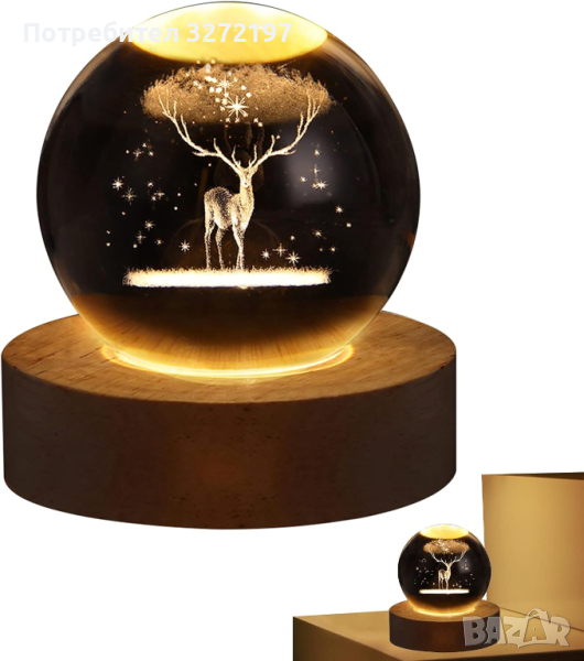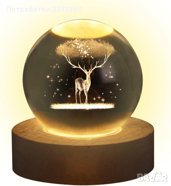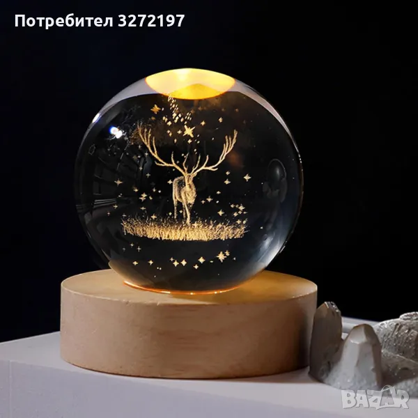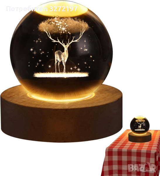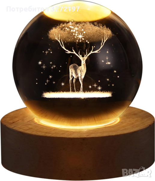 LED Светеща кристална топка/лампа, 3D сензорна - Елен