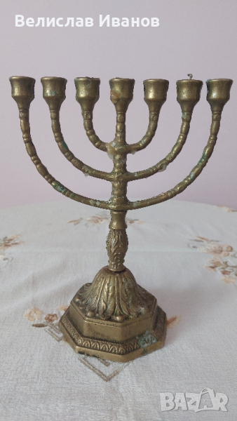 Бронзов свещник менора . Старинен.Перфектно състояние. → Обява 45035475