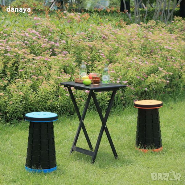 Пластмасова табуретка, сгъваема, преносима и регулираща се по височина. Стабилна сгъваена табуретка – с нея винаги ще имате къде да си починете, дори да сте на път или на разходка сред природата.