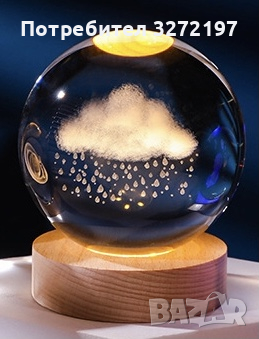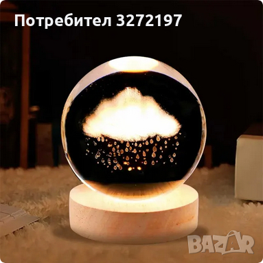 LED Светеща кристална топка/лампа, 3D сензорна - Дъждовен Облак