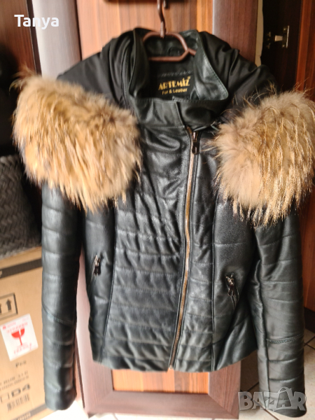 Яке от естествена кожа с голям естествен пух → Обява 45036359