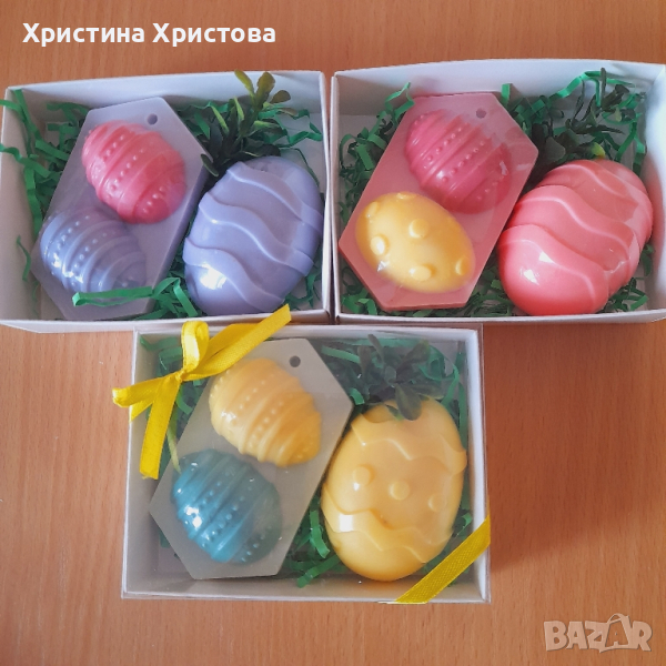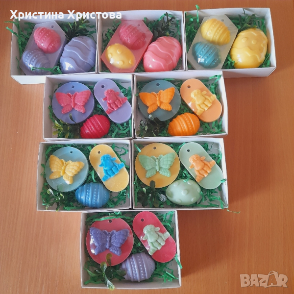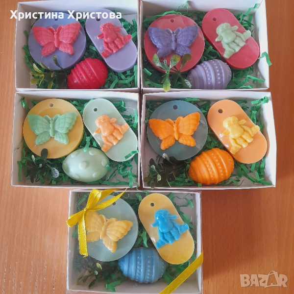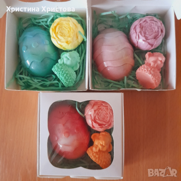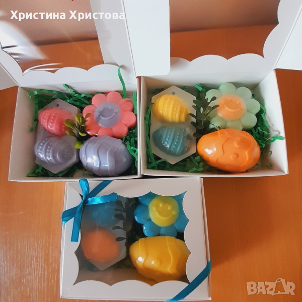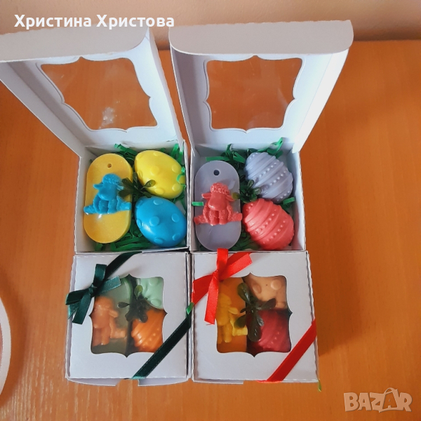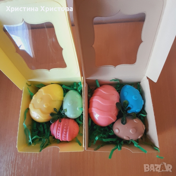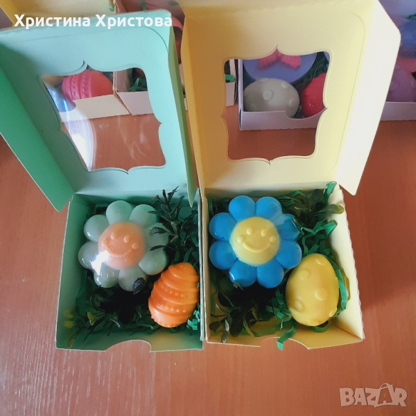 Прекрасни Великденски кутийки с ароматни и цветни глицеринови сапунчета.