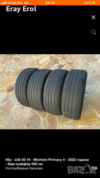 4бр - 235 50 19 - Michelin Primacy 4 - 2022 година - 6мм → Обява 45039898
