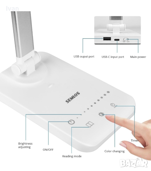 Персонализирано осветление: тази универсална настолна лампа специално ви предоставя 5 нива на яркост, както и 5 цветови тона(3000k-6500k). Можете бързо да персонализирате идеалното осветление с интензитет (по-ярко/по-тъмно) и нюанси (по-студено/по-топло) само чрез чувствителен сензорен панел.