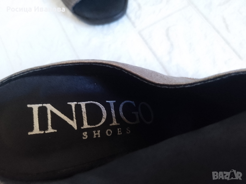 Изключително удобни и красиви чехли на ток, изцяло от естествена кожа. Само пробвани. Закупени за далеч по-висока цена. Индиго произвежда висококачествени обувки.