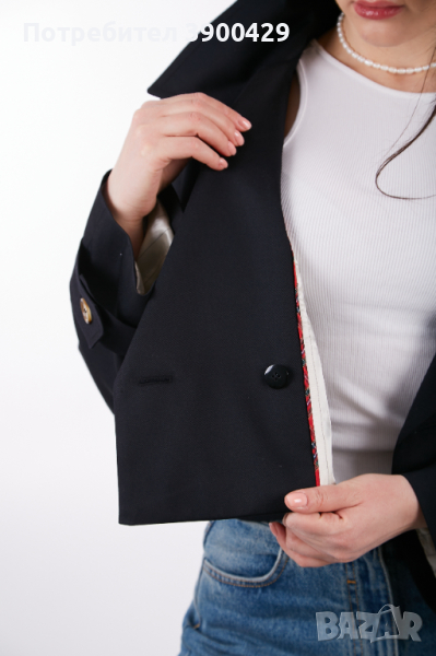 Модела е със свободна кройка и скъсена дължина.