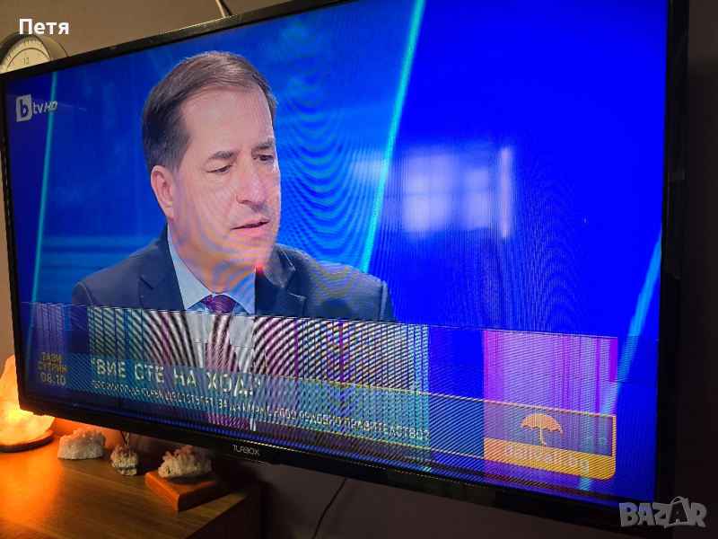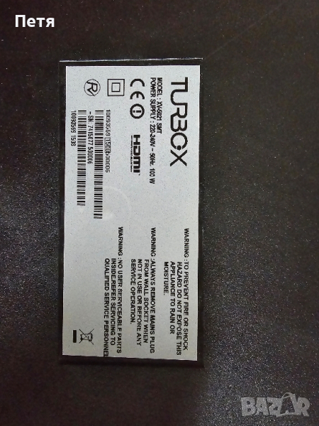 Продавам 50 инчов телевизор Turbo X с проблем в дисплея. Телевизорът не е падал, просто се появиха тези черти в долната част. При включване на тв не са много видими, но като загрее стават плътни. Прилагам снимки и точен модел. Телевизорът разполага с оригиналната стойка към модела, дистанционно и кашон. Подходящ за ремонт или резервни части. Телевизор Turbo x 50". Лично предаване в гр. София.