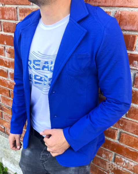 Страхотно спортно сако в уникален син цвят, предлагано само и единствено при нас! Мъжкото сако е перфектно за съчетаване с дънки, спортен панталон, риза или тениска. Невероятен финален щрих към вашия спортно елегантен вид. Сакото е подходящо за официални вечери, приеми, партита или просто разходка в прохладните дни. Изработено е от високачествен памук, който гарантира мекота и комфорт.