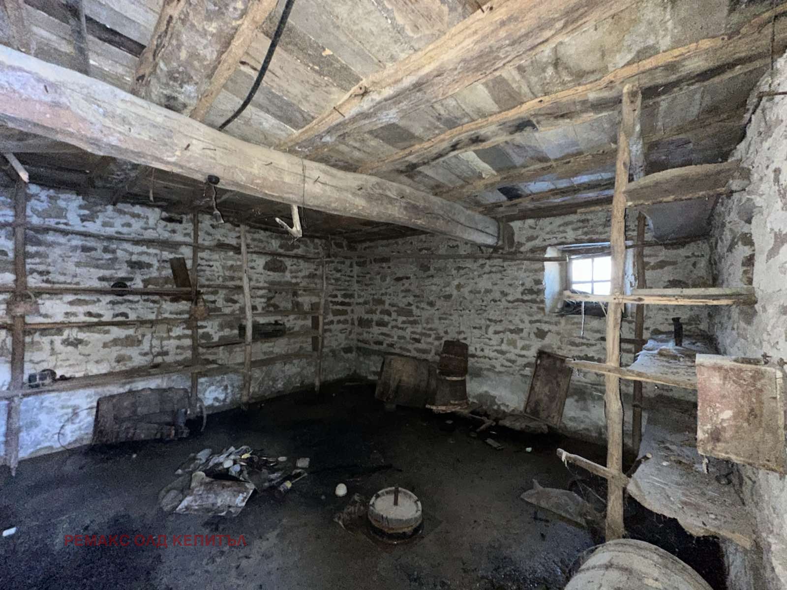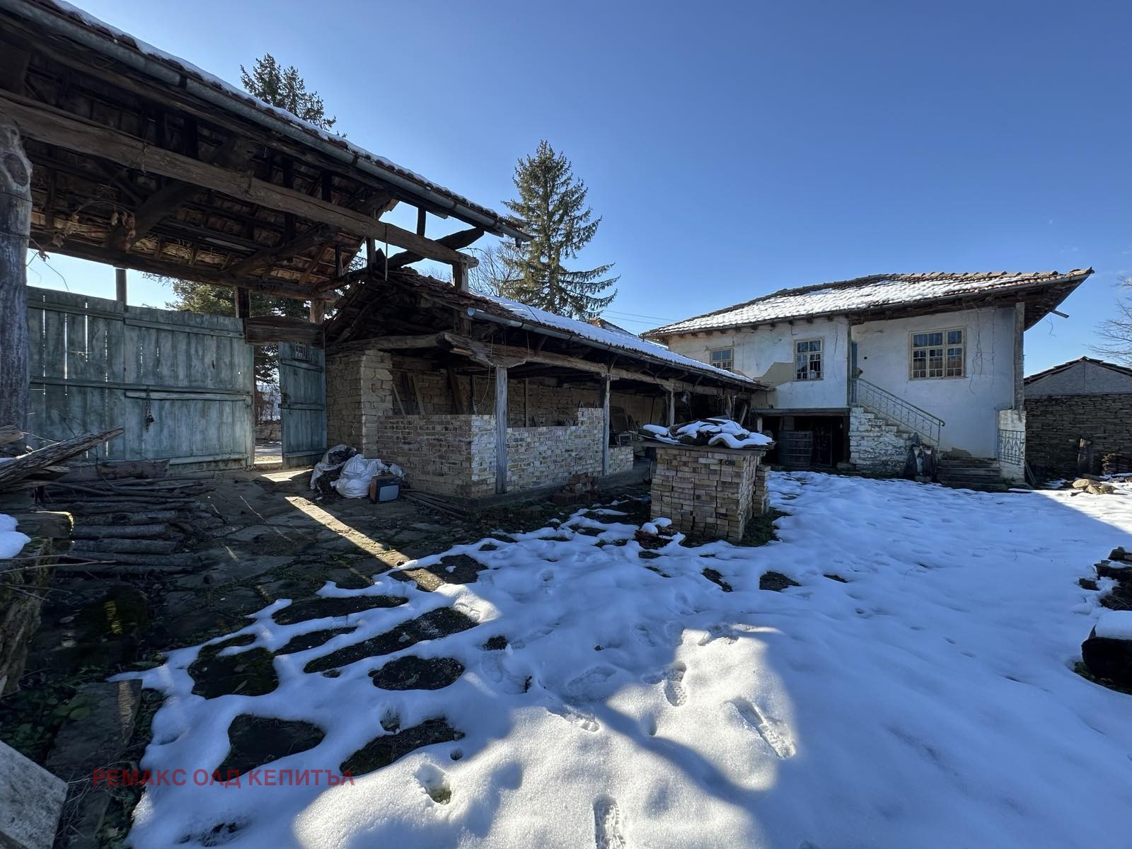 Целия парцел е терасиран на две нива. Едното ниво е оформено като зона за отдих, ливада и плодни дръвчета а на другото ниво са всички постройки. Имота граничи на две улици и е с действащи партиди за ток и вода. Къщата е стара постройка, нуждае се от частичен ремонт. Таваните са дъсчени и равни а подовете от дебело дюшеме. Между етажите и тавана е гредоред. Самата къща е здрава, с каменни зидове на първия етаж където имаме две големи помещения. До втория етаж се достига по каменни стъпала изработени от цели блокове всяко едно от тях. Разпределението на този етаж е следното, антре с килер, две стаи с южно изложение с гледка към улицата и една стая на север с гледка към вътрешния двор и планината. Покрива е здрав. До самата къща е долепена едната помощна сграда, която е подходяща за лятна кухня или битово помещение. Две от останалите три постройки около къщата са били изцяло с каменни стени, но са се самосъборили. На тяхно място може да се изградят отново някакви помещения или камъните, който в голямата си част са с правилна форма да се използват за други градежи. Третата сграда е със запазени изцяло каменни стени, но пропаднал покрив. От към улицата на която е главния вход, цялото лице на имота е от висок каменен зид и голяма порта. Почти от всякъде парцела е ограден от различен по височина каменен зид. Обстановката е романтична а имота е с потенциал за реализиране на различни инвестиционни намерения.