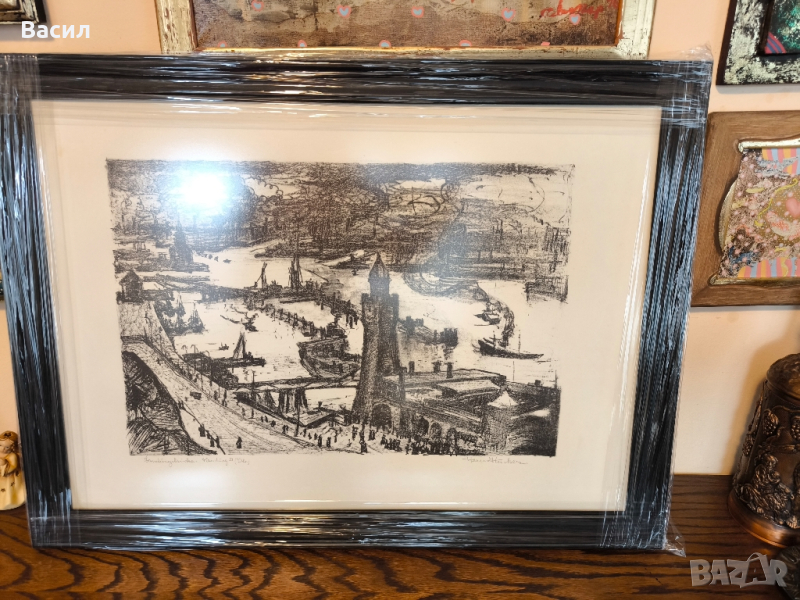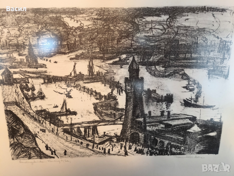 "Hamburg-Die Landungsbrücken" - литография, 38 x 56 см, подписана и надписана.