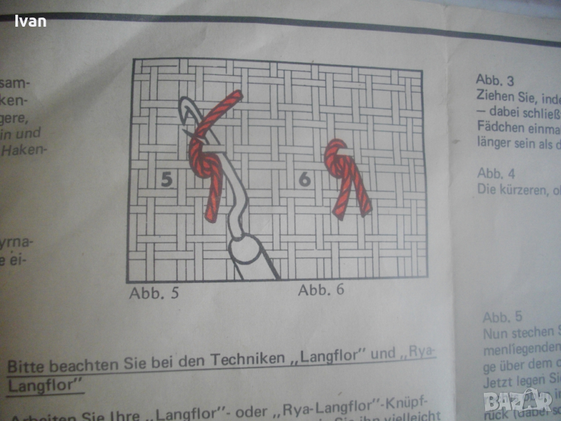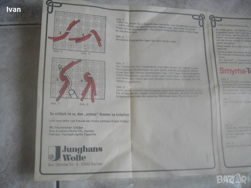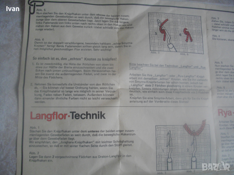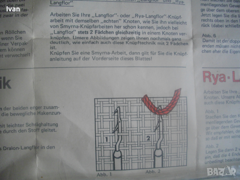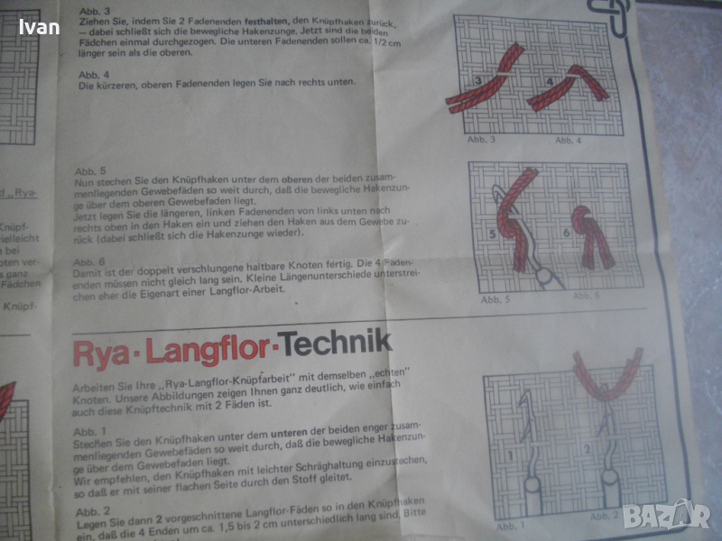 Към комплекта има указания на немски език за правилна употреба с показани много рисунки на различен захват на плетивото.
