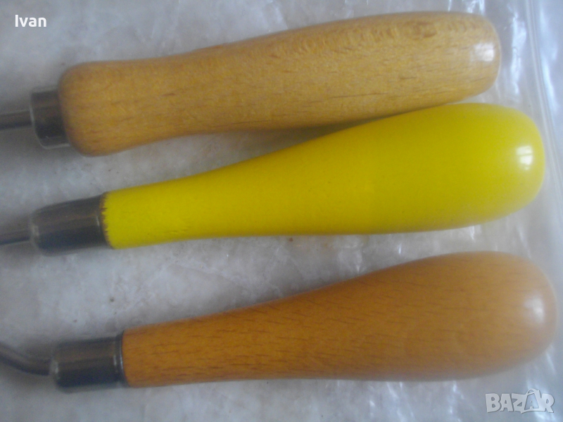 Дървени дръжки с метални пристагящи пръстени и стоманена работна част.