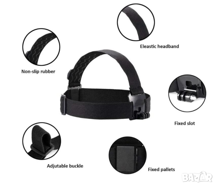 Челник Универсална Стойка за Глава Монтажна Лента за Екшън Камери Лесен Монтаж Спортни Камери GoPro©
