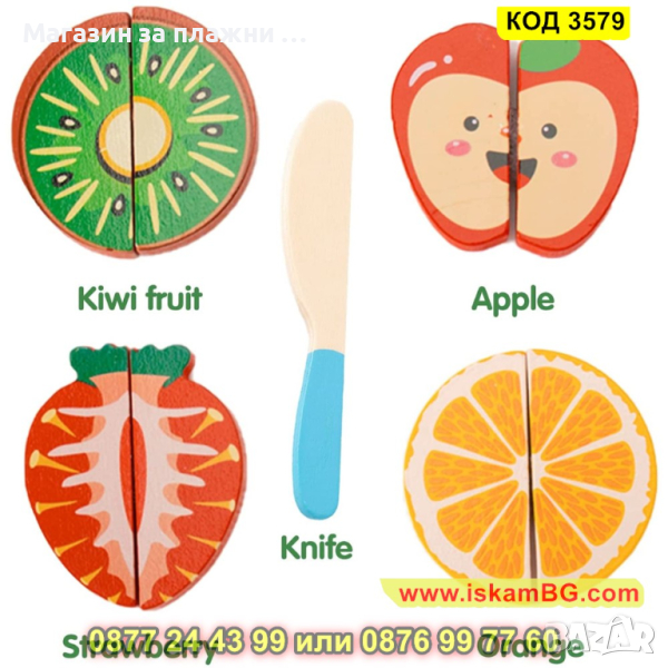 Плодове: ябълка, портокал, ягода и киви
