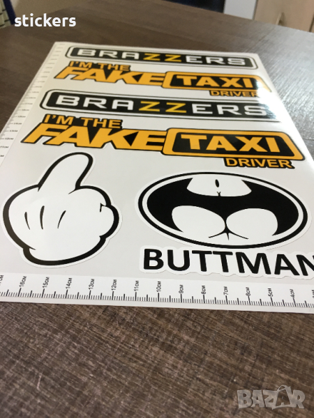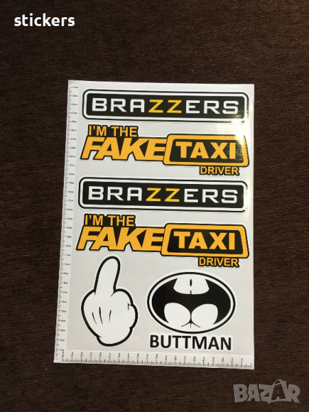 Стикери BrazzerS, Mickey, Fake Taxi, Buttman PVC фолио лист А4 → Обява 45053267