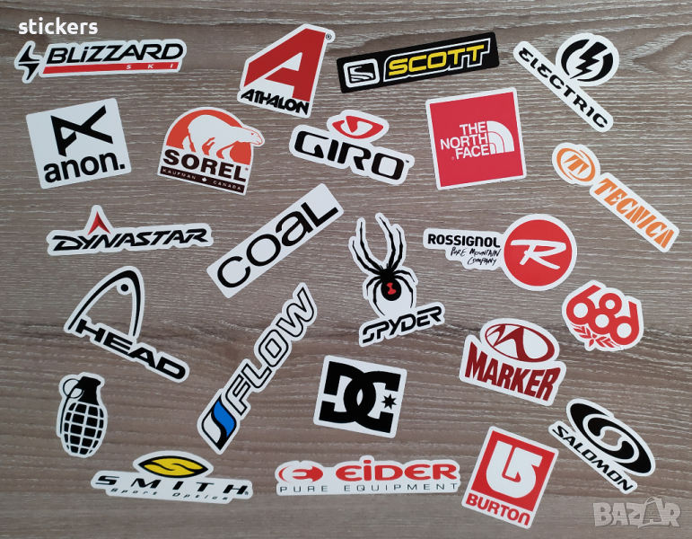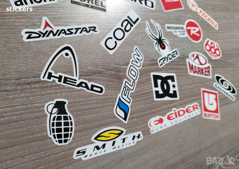 Стикери спонсори Сноуборд Ски марки лист А4 - 23 бр. общо Sticker → Обява 45053525