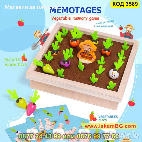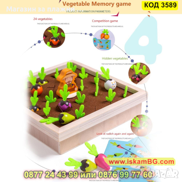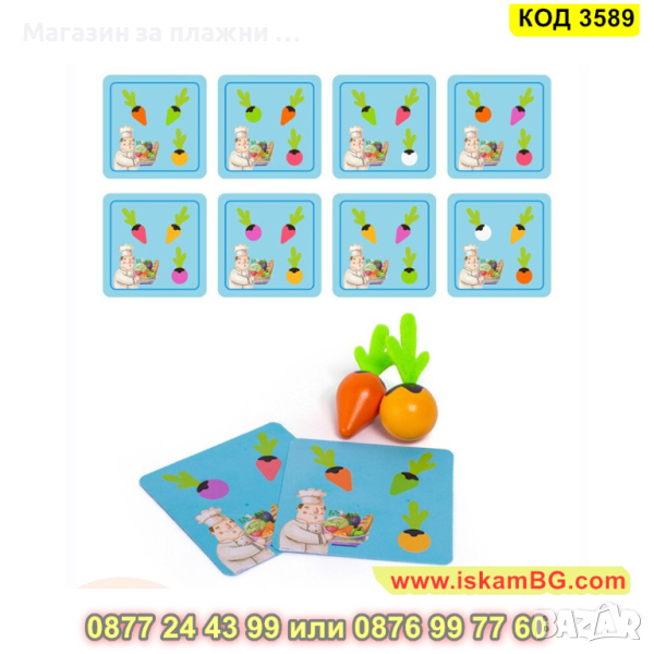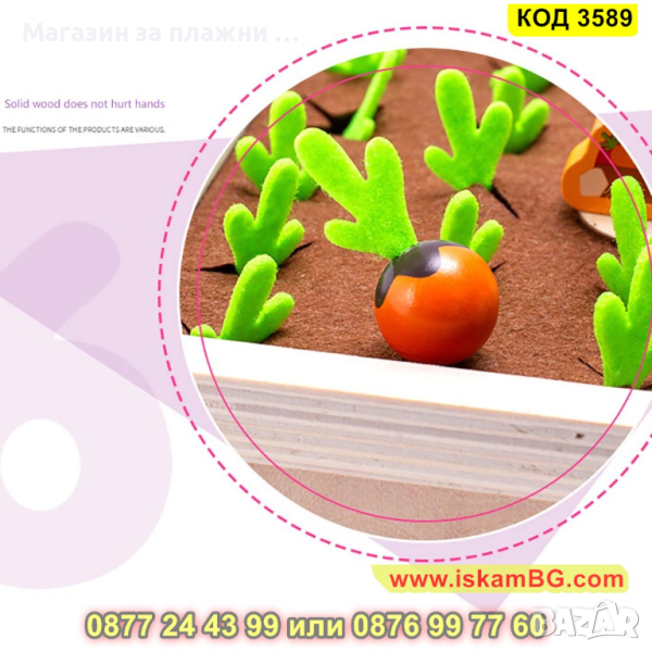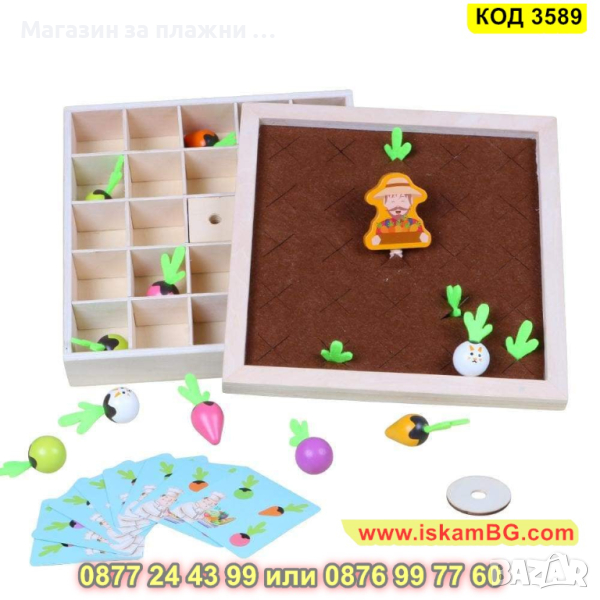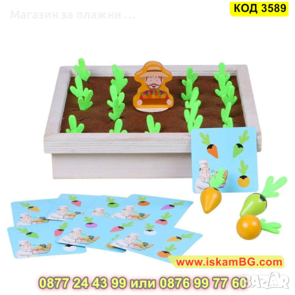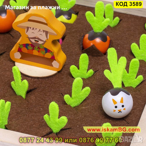 Монтесори игра за памет "Издърпай морковче" изработена от дърво - КОД 3589