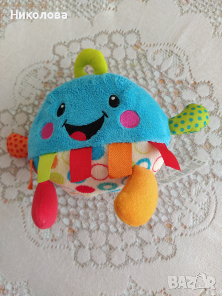 Смееща се плюшена играчка с батерии,при натискане започва да се смее,така забавлява бебенца и дечица.