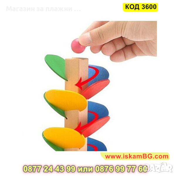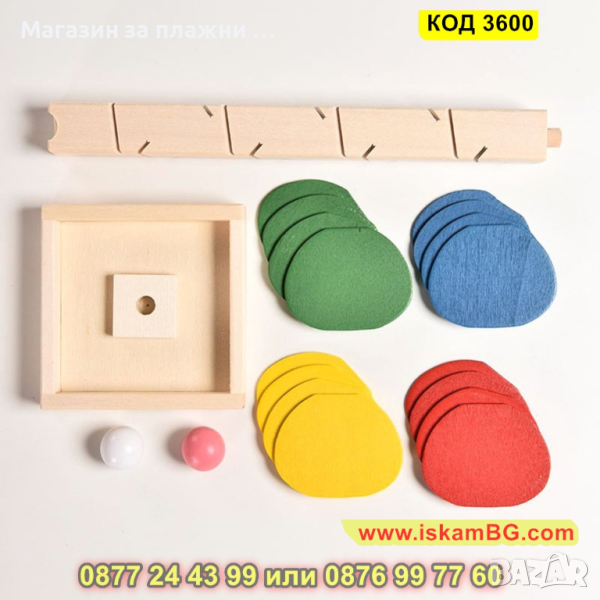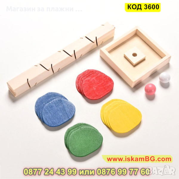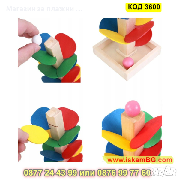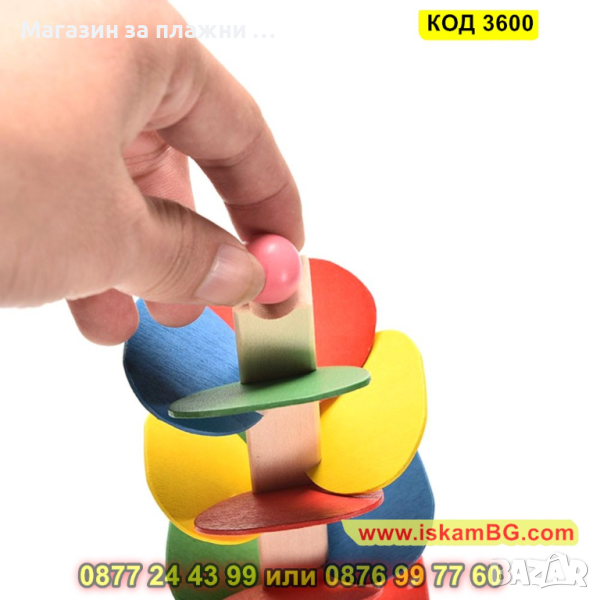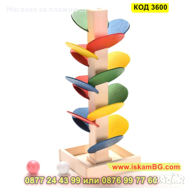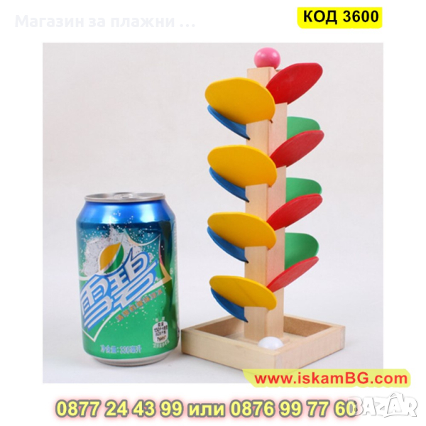 Дървена играчка - Пъзел Дърво с падащи цветни листа и 2 бр. топчета - КОД 3600