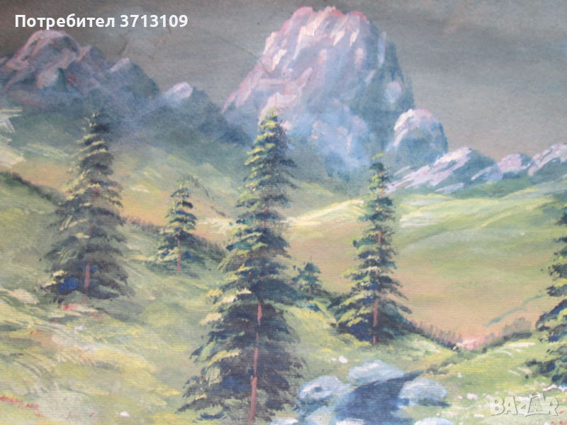 Стара Картина акварел с оригинална дървена рамка