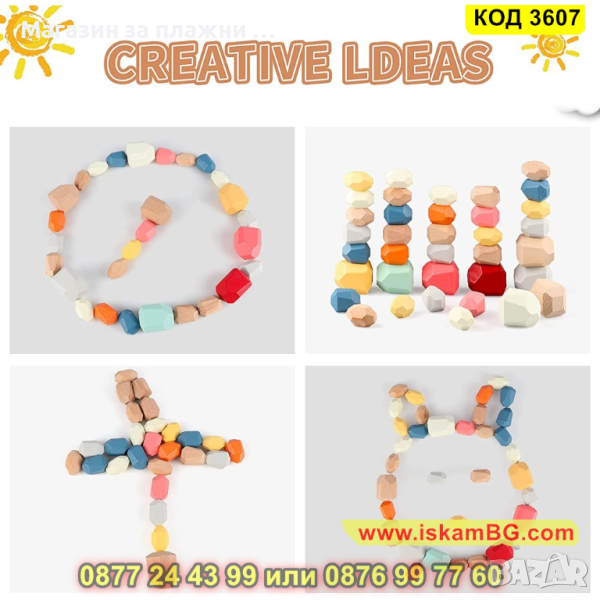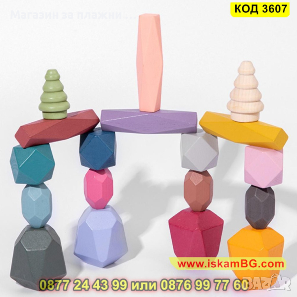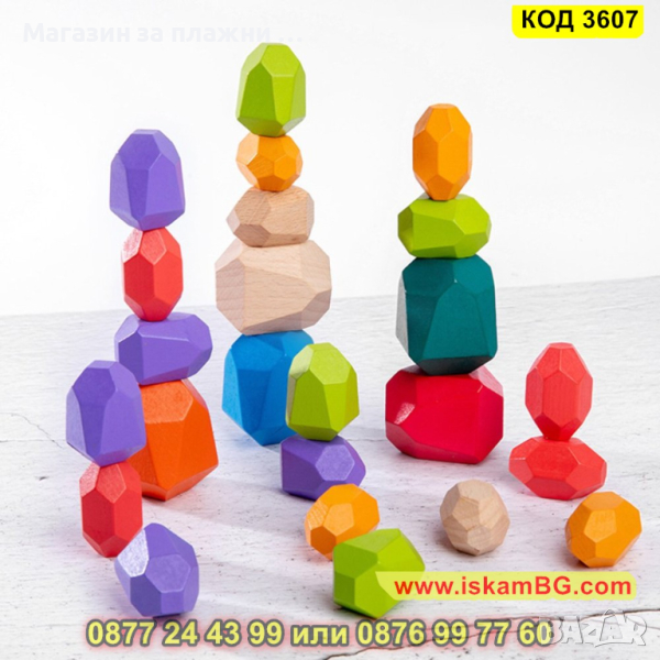 С тези камъчета имаш възможност да развихриш въображението си! Различните по форма фигури могат да създадат причудливи форми, докато са балансирани. Играейки, детето ще упражнява търпението, моториката и координацията си. А когато се включат и другите членове от семейството, се получава още по-забавно занимание.
