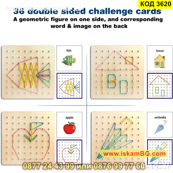 Този продукт е идеален за деца, които обичат да изследват и създават, като в същото време учат и развиват своите умения. Геобордът е забавление с образователна стойност, който подпомага детското обучение през играта."