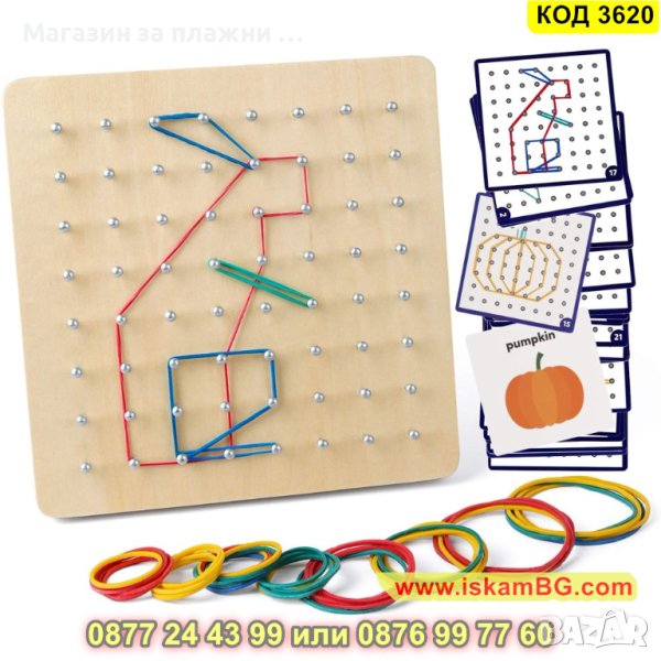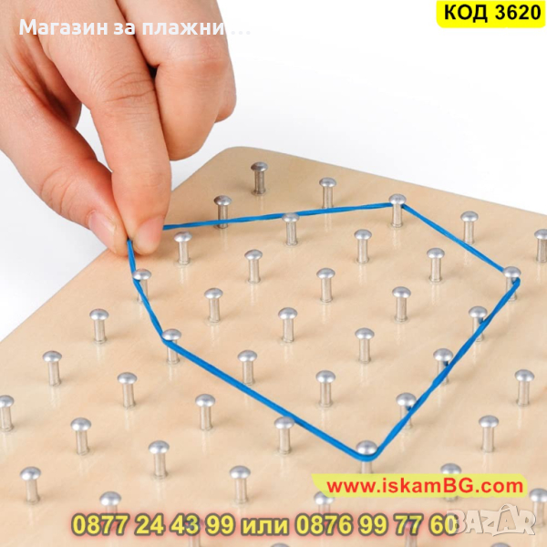 "Геобордът - дървена дъска за образуване на фигурки с ластички, е отличен начин за развиване на творческото мислене и геометричните умения на децата. Този образователен инструмент предоставя възможността да се създават различни форми и фигури, като децата използват ластички върху дървената дъска.