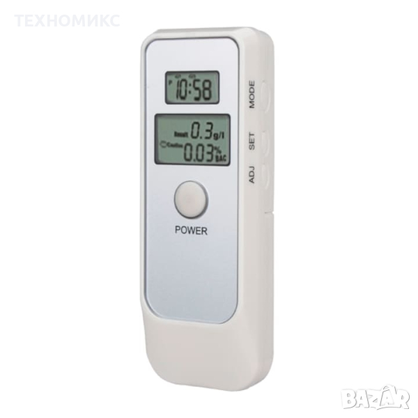 Дигитален тестер за алкохол в кръвта, бърза реакция, функция часовник, таймер, бял - AT002