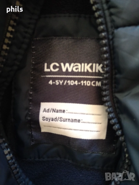 Тъмно синьо ,дълго,зимно яке за момче 4-5 г. Марка Waikiki. Дължина 50 см.ръкав 38 см. Няма забележки.