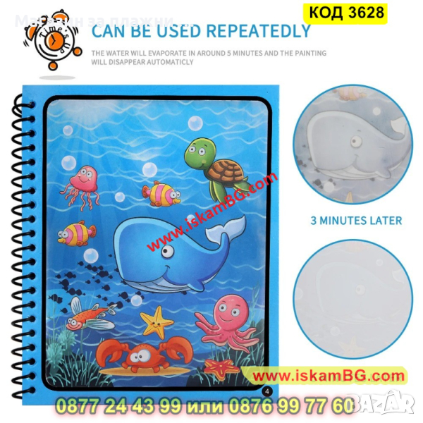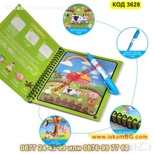 - Магическа книжка за оцветяване с вода е за многократна употреба.