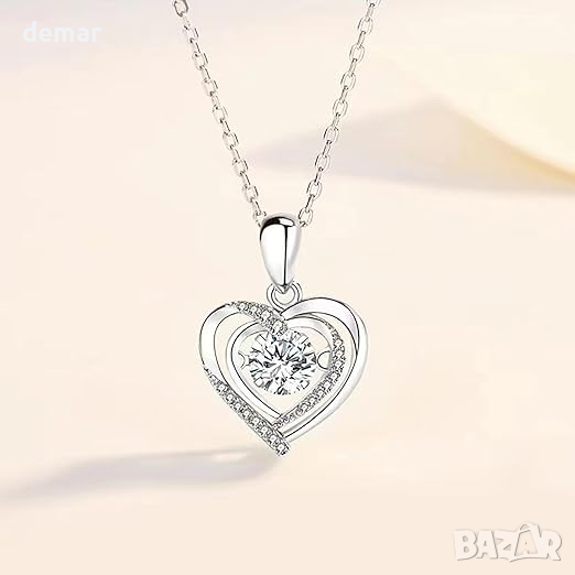 Колие с висулка сърце с бял цирконий