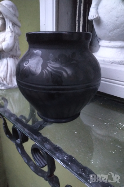 Великолепна изработка черна ,с гланцирани цветя ,изцяло ръчна авторска изработка с надпис на автора .Лека едва видна забележка ( на последна снимка )Висока 16 см гърло 11 см .КРАЙНА ЦЕНА БЕЗ БАРТЕРИ