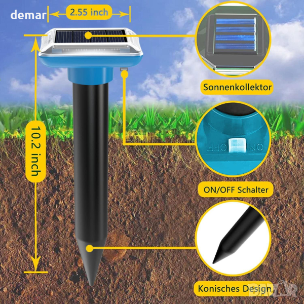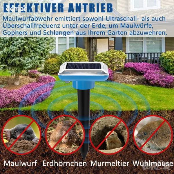 Соларен репелент за къртици, ултразвуков, водоустойчив, 4 бр.