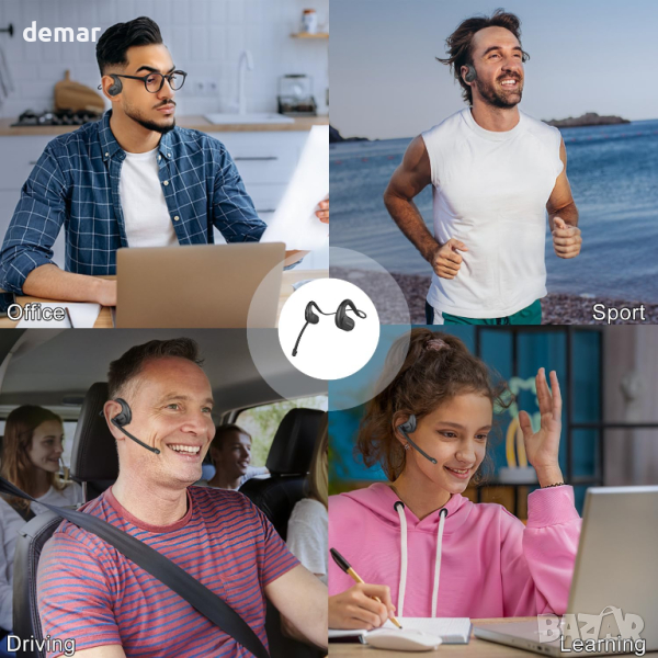 Bluetooth слушалки Seflorgo с микрофон, безжични компютърни V5.3, с отворено ухо