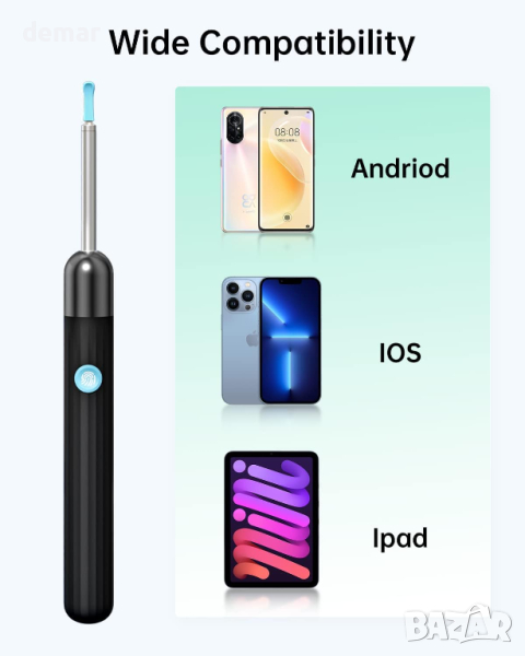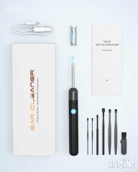 Инструментът за отстраняване на ушна кал разполага с 1080P HD камера, оборудвана с 6 LED светлини, 6-осен жироскоп и 360° широкоъгълен обектив за ясно и стабилно изображение дълбоко в ушния канал, което го прави подходящ за различни размери и цели на ушите като проверка за инфекции или отстраняване на ушна кал. Той е универсален и лесен за използване за изследване на уши, зъби, носни проходи и гърла на деца, възрастни и домашни любимци, просто чрез свързване към WiFi след изтегляне на приложението „Suear“. Проектиран с оглед на съвместимостта и безопасността, той работи както с устройства с Android, така и с iOS, има 3,5 mm щадяща кожата леща с контролирана температура за защита на ушния канал и включва силиконови капачки за тапи за уши за предотвратяване на драскотини. Устройството може да се похвали с дълготрайна акумулаторна батерия от 350 mAh, IP67 водоустойчива леща за лесно почистване и се предлага с пълен пакет, включващ силиконови капачки за тапи за уши, бутилка за съхранение, традиционен комплект лъжичка за уши, игла за акне, кабел за зареждане и ръководство за употреба