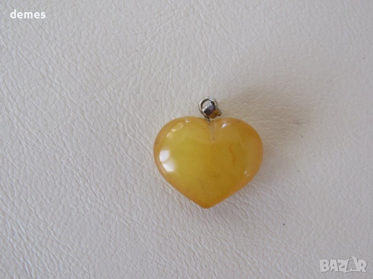Висулката е във форма на обемно сърце от първокласен балтийски кехлибар.