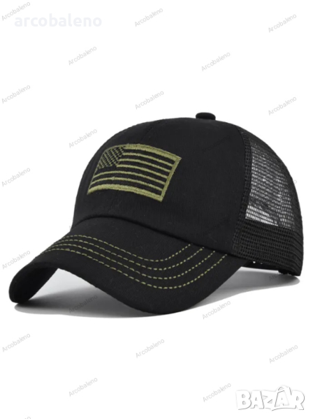 Дизайн: Тази шапка с бродиран детайл от американското знаме добавя патриотичен щрих към вашето облекло. Мрежестият дизайн на гърба осигурява дишане, което го прави идеален за дейности на открито.