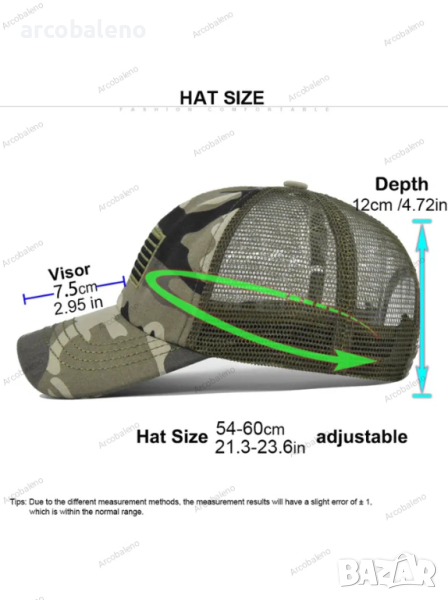 Материал: Изработена от смес от памук и полиестер, тази шапка предлага издръжливост и комфорт за носене през целия ден. Тъканата материя добавя нотка изтънченост към класическия камуфлажен дизайн.