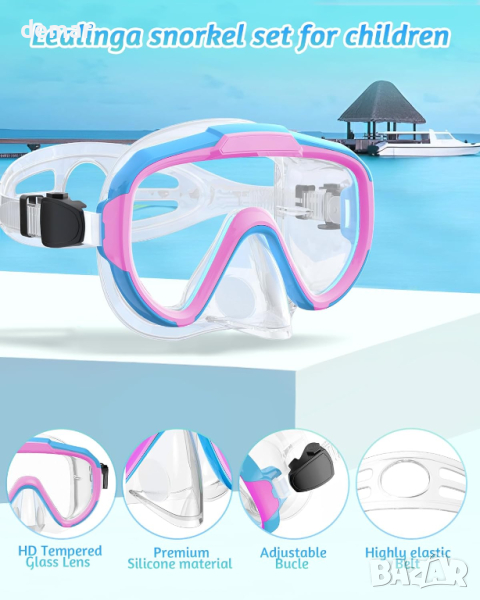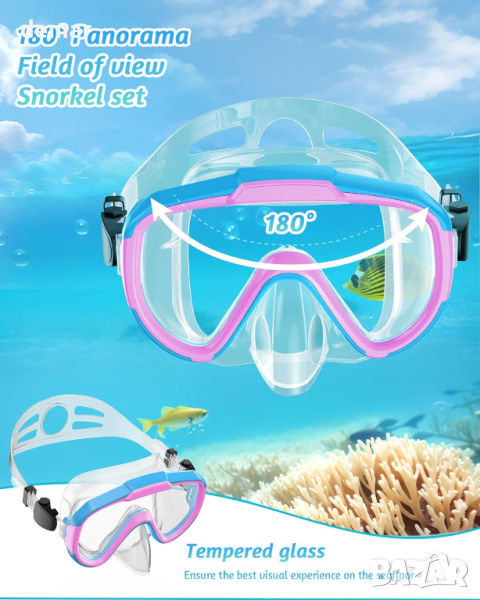 Lealinga Комплект за гмуркане с шнорхел и маска против замъгляване за деца 6-14 г., розово/синьо