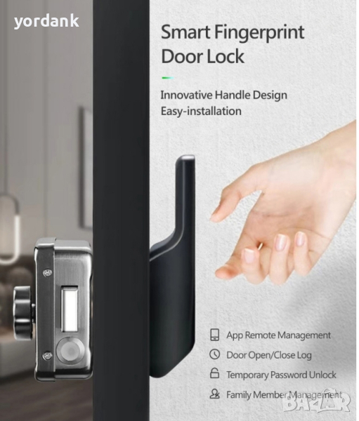 С интелигентните брави вече няма да имате нужда от ключовете си, ще сте по-сигурни в дома си и ще можете да контролирате всички достъпи. Тази интелигентна брава Tuya WiFi поддържа 5 различни начина за отключване и вие можете да заключвате или отключвате интелигентната си ключалка навсякъде и по всяко време чрез APP и е лесен за инсталиране или премахване, ако търсите нова брава, опитайте този продукт, той няма да ви подведе. Smart WiFi е в състояние да се превърне в основата на система за достъп до всяка стая с помощта на телефон, ПИН код, RFID ключ, пръстов отпечатък или обикновен железен ключ. Управление от APP без нужда от система за домашна автоматизация Позволява дистанционно управление чрез приложението TuyaSmart или SmartLife. Позволява ви да отворите вратата от всяко място с мобилния си телефон и да знаете кога вратата е била отворена. Създавайте сцени по ваш вкус Ако имате инсталирани няколко устройства с активиран Tuya във вашия дом, можете да ги свържете заедно и да задействате сцена, като включване на определени светлини, когато отворите вратата с пръстовия си отпечатък след определено време, или включване отоплението, когато отваряте, затваряте вратата с вашия пръстов отпечатък, личен код или карта. Отключване с парола Администраторът може да зададе парола за влизане с дължина от 6 до 8 стойности. Отключване с пръстов отпечатък Бърза и лесна система за отваряне с разпознаване на пръстови отпечатъци за по-малко от 1 секунда. Администраторът в приложението може да поддържа потребителска база данни: да добавя и премахва правата на достъп на хората до обекта. Общият брой на потребителите не може да надвишава 100 единици. Приложение за смартфон Tuya Smart или Smartlife за 100 потребители, лесно за използване. Поддръжка на RFID ключове Администраторът може да конфигурира ключове с работна честота от 13,56 MHz. Диапазонът на четене на ключа варира от 2 до 6 см. Поддържа честота 433 MHz Бравата се отличава с опора за дистанционно управление (включено) за отключване на вратата. Осигурява лесно управление (включване / изключване) с натискане на бутон в рамките на 20 метра. Достъп до монитор С Tuya Smart Smart WiFi Lock в приложението се създава запис на потребителите, които са го отворили и как са го направили (пръстов отпечатък, карта или код). В случай, че го използвате в малък бизнес, можете да проверите дали пристигането на служителите е станало навреме. В случай, че бъдат засечени няколко последователни неуспешни опита за отваряне (чрез пръстов отпечатък или код), ще получим известие чрез приложението. Всичко това допринася за безопасността на нашия дом или бизнес, за да улесни живота ни.