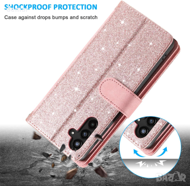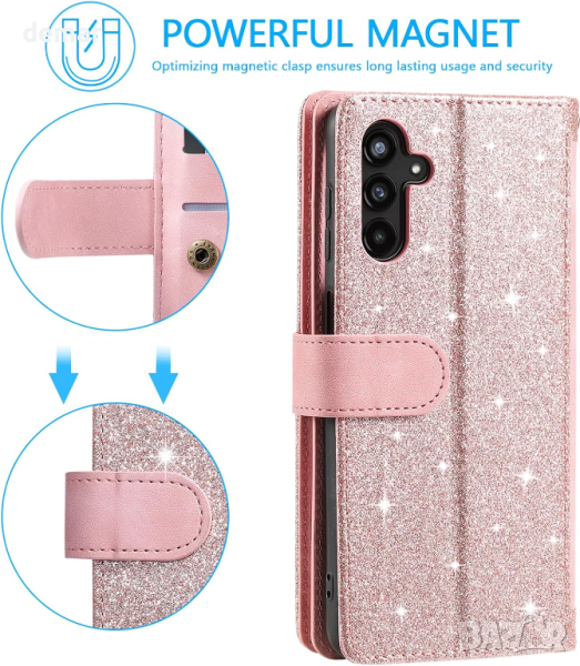 UEBAI кожен портфейл калъф за Samsung Galaxy S24 5G, с магнитно затваряне флип калъф - розово злато
