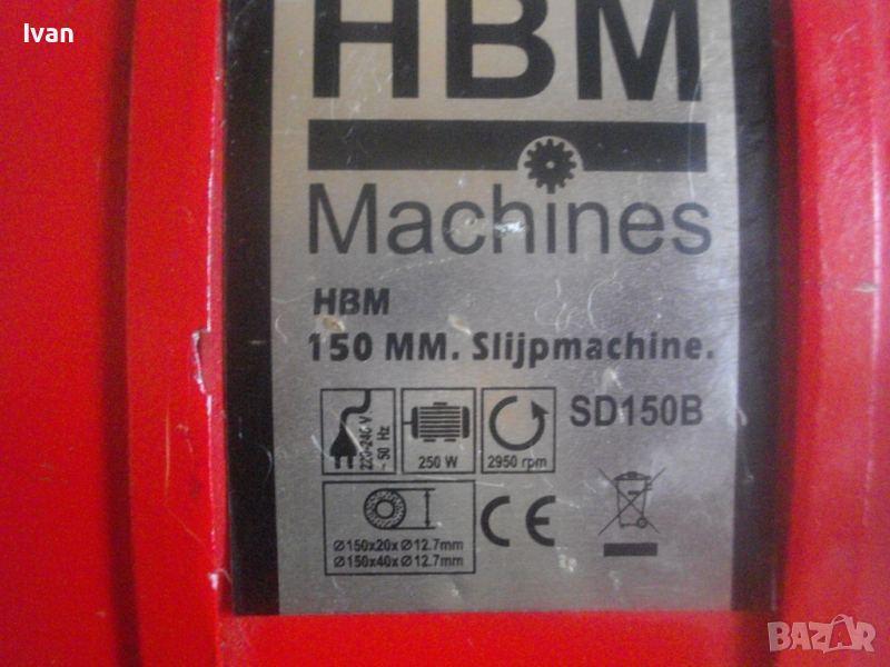 Немски Професионален Ел. Шмиргел-250 Вата/ф150мм-Като Нов-ОТЛИЧЕН-HBM Machinen