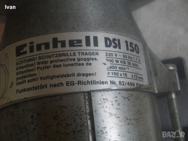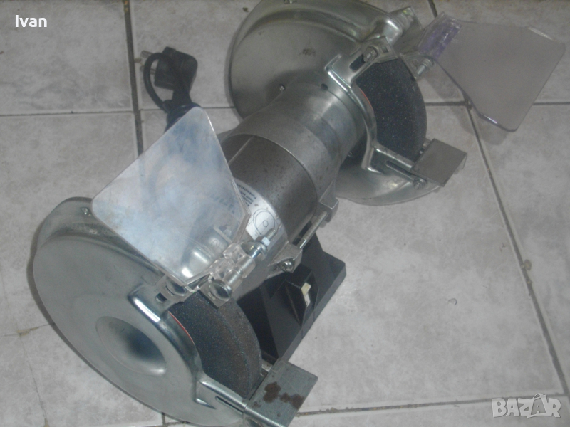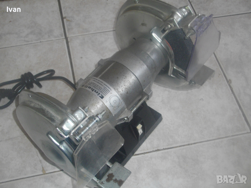 ОПИСАНИЕ на сребрист НОВ немски шмиргел 200 вата Ейнхел - цна 209 лв. Съвсем нов, неизползван и неупотребяван лектрически масивен шмиргел, 200 ватов модел с голяма защита 1,7 ампера, оригинален немски ПРОФЕСИОНАЛЕН модел на Ейнхел с много голямо време на работа с 1 пуск - 30 мин. Машината е в ОТЛИЧНО техническо/работно състояние. Без забележки. Хипер мощна, бърза и ефективна. След спиране на пусковият ключ камъните дискове се въртят дълго.