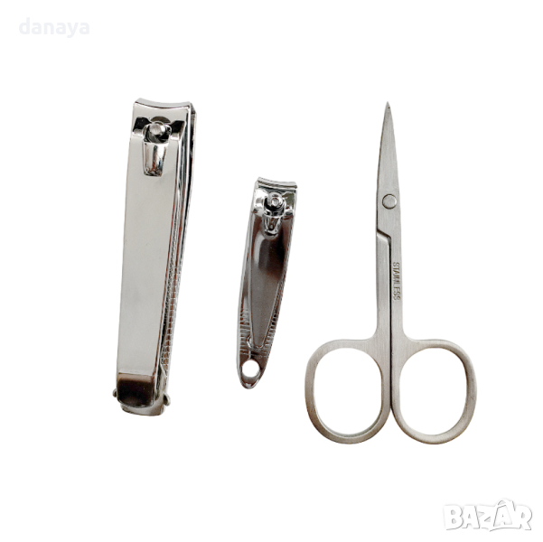 Комплект за маникюр и педикюр от 3 части – 2 размера нокторезачки и ножичка с извит връх. Ако търсите универсален инструмент за изрязване и изравняване на нокти, който да използвате вие и вашето семейство – този комплект е напълно подходящ. Нокторезачките са с острие тип “дъга”, извито навътре. Ножичката и нокторезачките са подходящи както за детски нокти, дамски нокти, така и с по-дебели мъжки нокти на ръце и на крака. Здравата дръжка на нокторезачката ще ви помогне лесно да скъсите нокътя с едно щракване.
