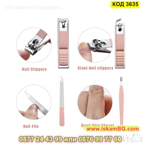 Комплект за маникюр и педикюр розов цвят 7/10/ или 12 части - КОД 3635