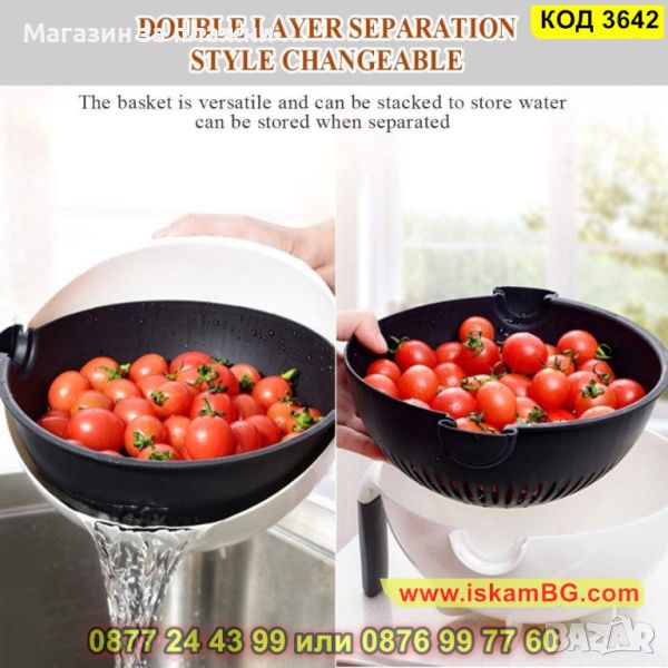 Миете, режете и сервирате салата с един уред! Можете да режете на шайби, жулиени, фини парченца, да свържете и да отцеждате без проблем!