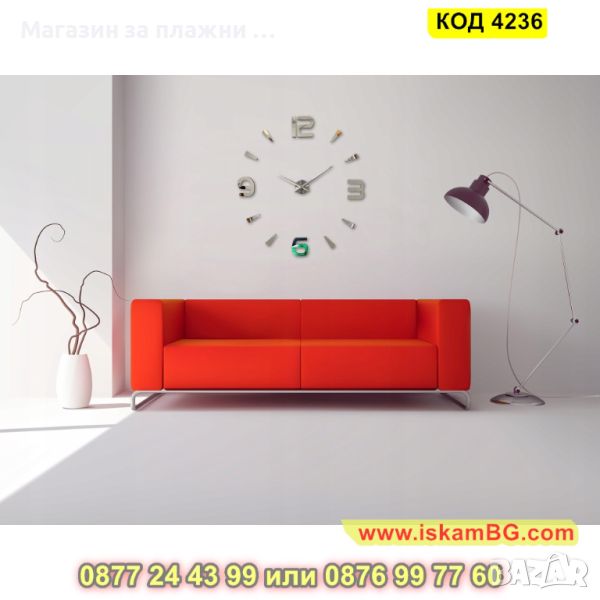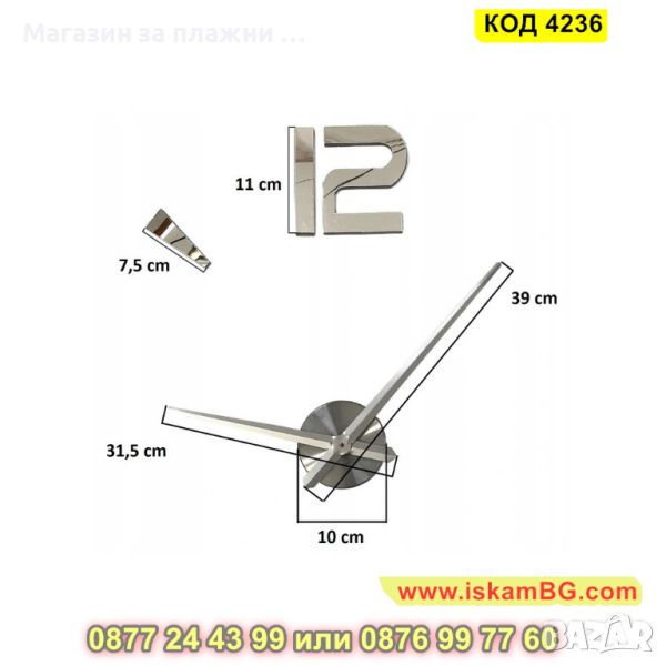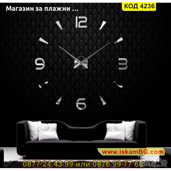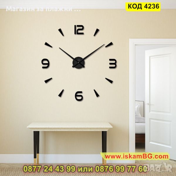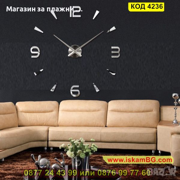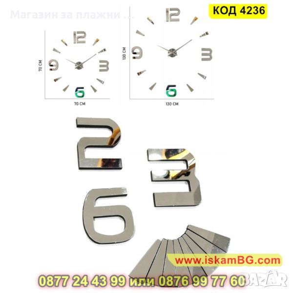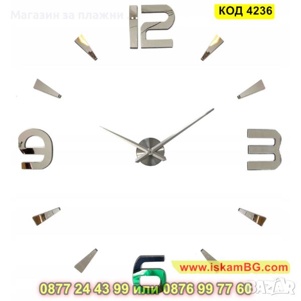 Много красив и модерен 3Д стенен часовник подходящ за монтаж с диаметър от 80 до 130 см. - в комплекта има шаблон с който да определите точно къде трябва да залепите цифрите