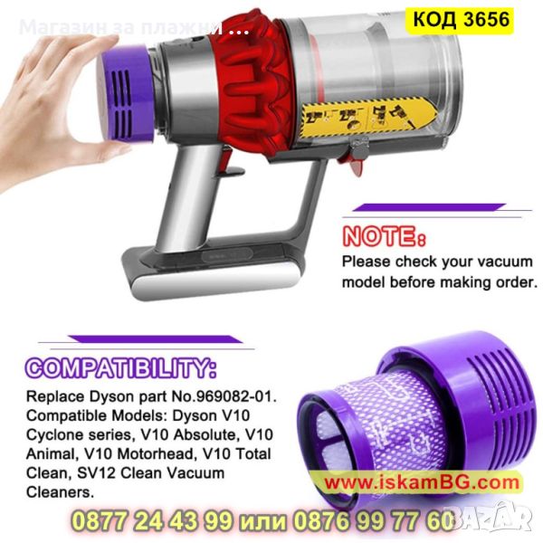 Филтър за многократка употреба за прахосмукачки Dyson V10 - КОД 3656