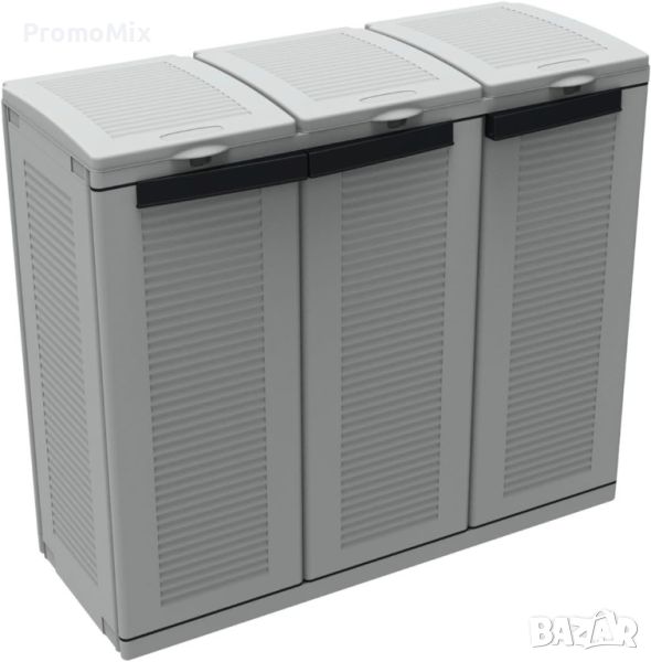 Модела разполага с 3 отделни отделения за събиране и сортиране на различните видове отпадъци, като всяко отделение на шкафа е с капацитет 110 литра.