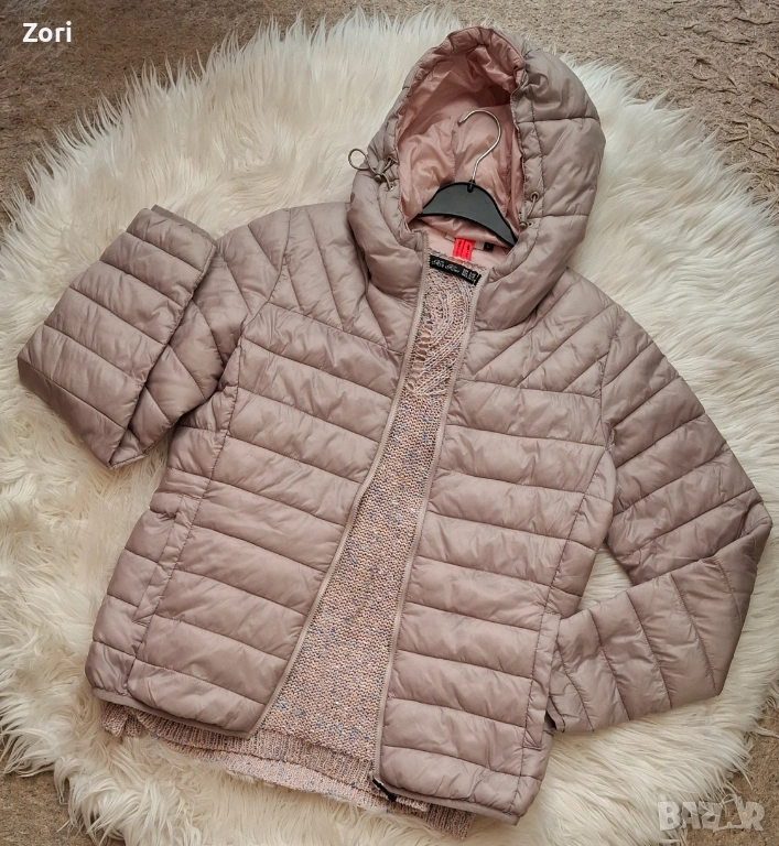 Сиво преходно яке с качулка е с розова подплата → Обява 45078488